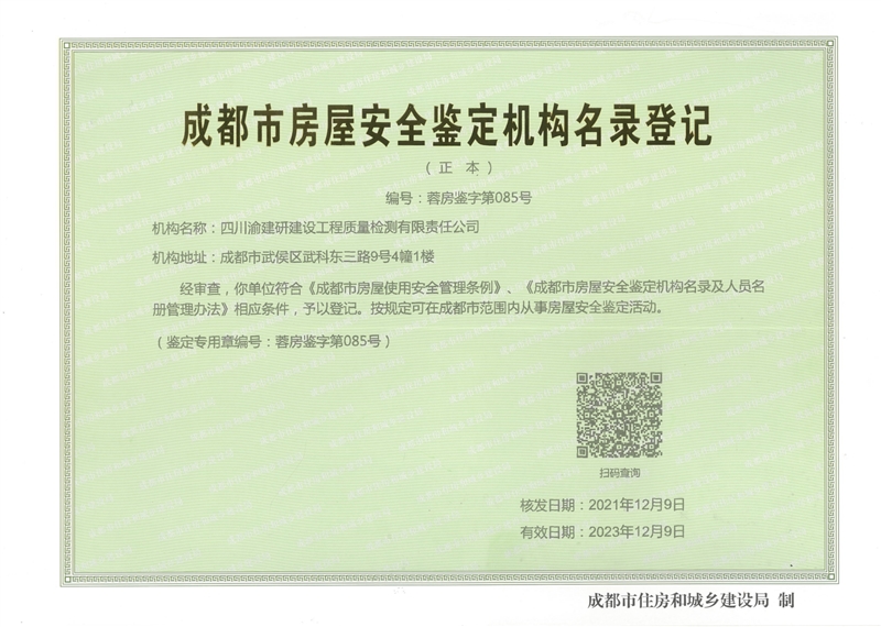 成都市房屋安全鑒定機構名錄登記