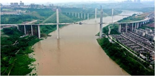蔡家嘉陵江軌道專用橋?yàn)殡p線軌道雙索面斜拉橋,全長(zhǎng)1250米,由南北引橋和主橋組成,橋跨為連續(xù)梁、雙索面斜拉橋、連續(xù)鋼構(gòu)引橋組成,其中主橋長(zhǎng)640米、主跨250米、主橋面距河床距離100米。在設(shè)計(jì)時(shí)兼顧了功能性、景觀性以及可實(shí)施性,最終選擇了與環(huán)境協(xié)調(diào),經(jīng)濟(jì)實(shí)惠、施工可實(shí)施性強(qiáng)的斜拉橋,由于橋墩高、橋面窄,主橋?qū)挾认鄬?duì)于普通的跨江公路大橋更窄,橋身顯得纖細(xì),在云霧中呈現(xiàn)婀娜多姿的柔美姿態(tài)。
