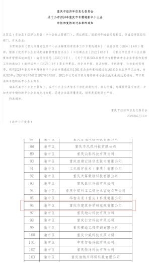 6月16日,從市經(jīng)濟(jì)信息委傳來(lái)喜訊,重慶設(shè)計(jì)集團(tuán)所屬子企業(yè)重慶市建筑科學(xué)研究院有限公司獲2024年重慶市專(zhuān)精特新中小企業(yè)稱(chēng)號(hào)。