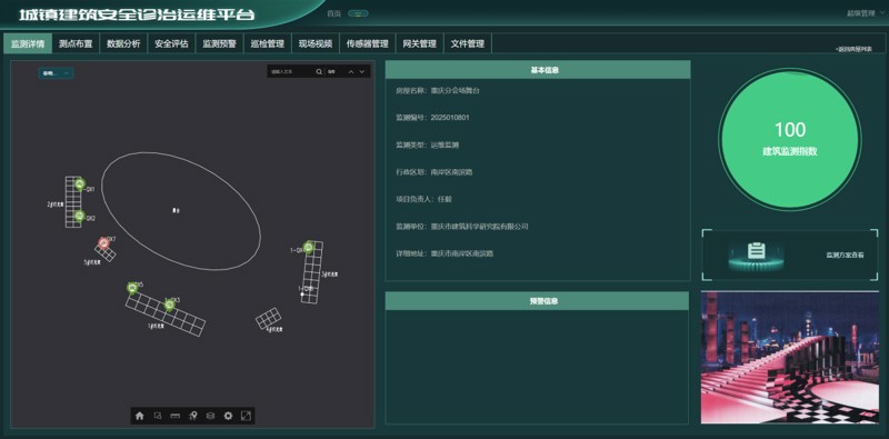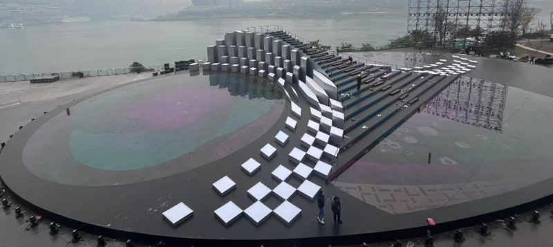 春晚重慶分會場臨時搭建舞臺位于南岸區南濱路彈子石廣場,此次評估工作范圍覆蓋了春晚分會場舞臺臨時搭建結構的各個環節。市建科院評估小組首先對舞臺整體結構進行了細致勘察,借助專業檢測設備對舞臺的承重能力、支撐結構的穩固性等關鍵指標進行了精準測量、計算分析,開展舞臺基座荷載試驗,并在舞臺燈光架體上設置自動化監測設備,在滿足每平米承重300公斤以上需求的同時保障了燈光架體的安全。評估小組還與春晚分會場工作人員進行充分溝通交流,詳細了解日常工作中遇到的安全問題以及應對措施,對于潛在安全隱患提出整改意見建議,進一步加強安全管理工作,確保春晚分會場運行安全、穩定、有序。