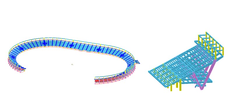 市建科院檢測團(tuán)隊著重對體育場看臺、主席臺、球員通道、觀眾出入口等區(qū)域展開了實時檢測,重點排查了裂縫、露筋等潛在風(fēng)險隱患。檢測團(tuán)隊利用3D3S鋼結(jié)構(gòu)分析軟件,建立三維計算模型,模擬賽事期間人員荷載、風(fēng)雨荷載等工況,計算網(wǎng)架承載能力與整體穩(wěn)定性,并聚焦看臺梁板、立柱等核心承重構(gòu)件,結(jié)合現(xiàn)場檢測數(shù)據(jù),運用PKPM結(jié)構(gòu)設(shè)計軟件進(jìn)行承載力復(fù)核。經(jīng)過連續(xù)高強(qiáng)度作業(yè),檢測團(tuán)隊如期完成全部檢測與分析工作,并準(zhǔn)時提交鑒定報告。