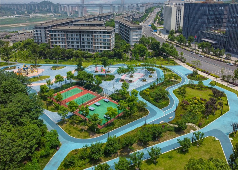 項目位于重慶市兩江新區(qū)大竹林街道金州大道與華山北路交叉口,于2022年9月開工,次年4月竣工,占地面積10.2萬平方米,被命名為“鳳棲社區(qū)體育文化公園”,公園整體以“島”空間為媒介,棧道串聯(lián)為紐帶的設(shè)計。定位為“城市綠肺”的社區(qū)文化體育公園,打造了“社區(qū)會客廳”“童頑匯”“運動匯”“鄰里見面匯”“萌寵匯”等多主題生活場景。