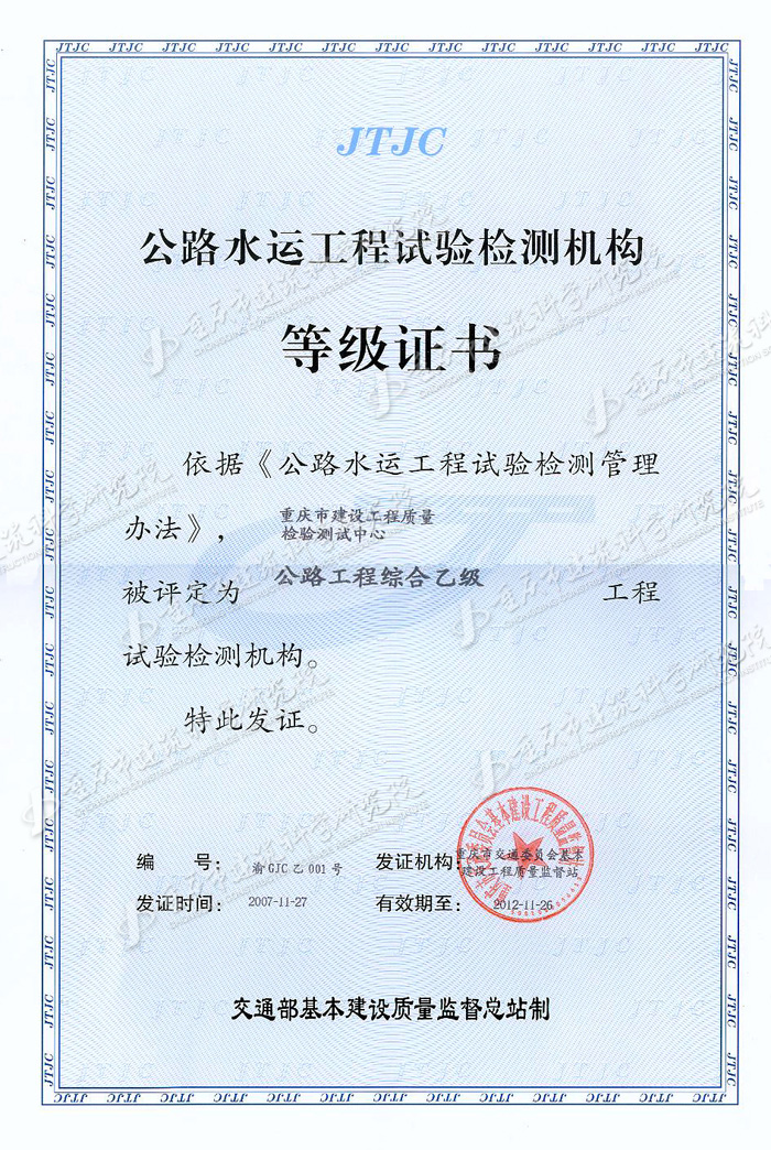 公路水運(yùn)工程監(jiān)理企業(yè)資質(zhì)證書
