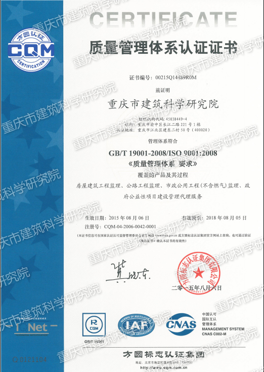 質(zhì)量管理體系認(rèn)證證書