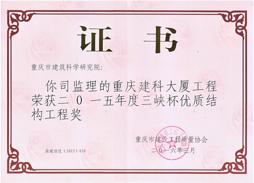 • 建科大廈工程獲三峽杯優質結構工程獎