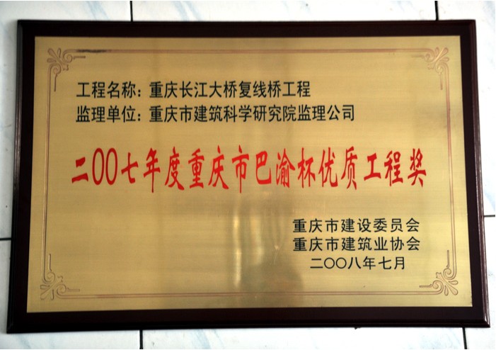 • 2007年度重慶市“巴渝杯”優質工程獎